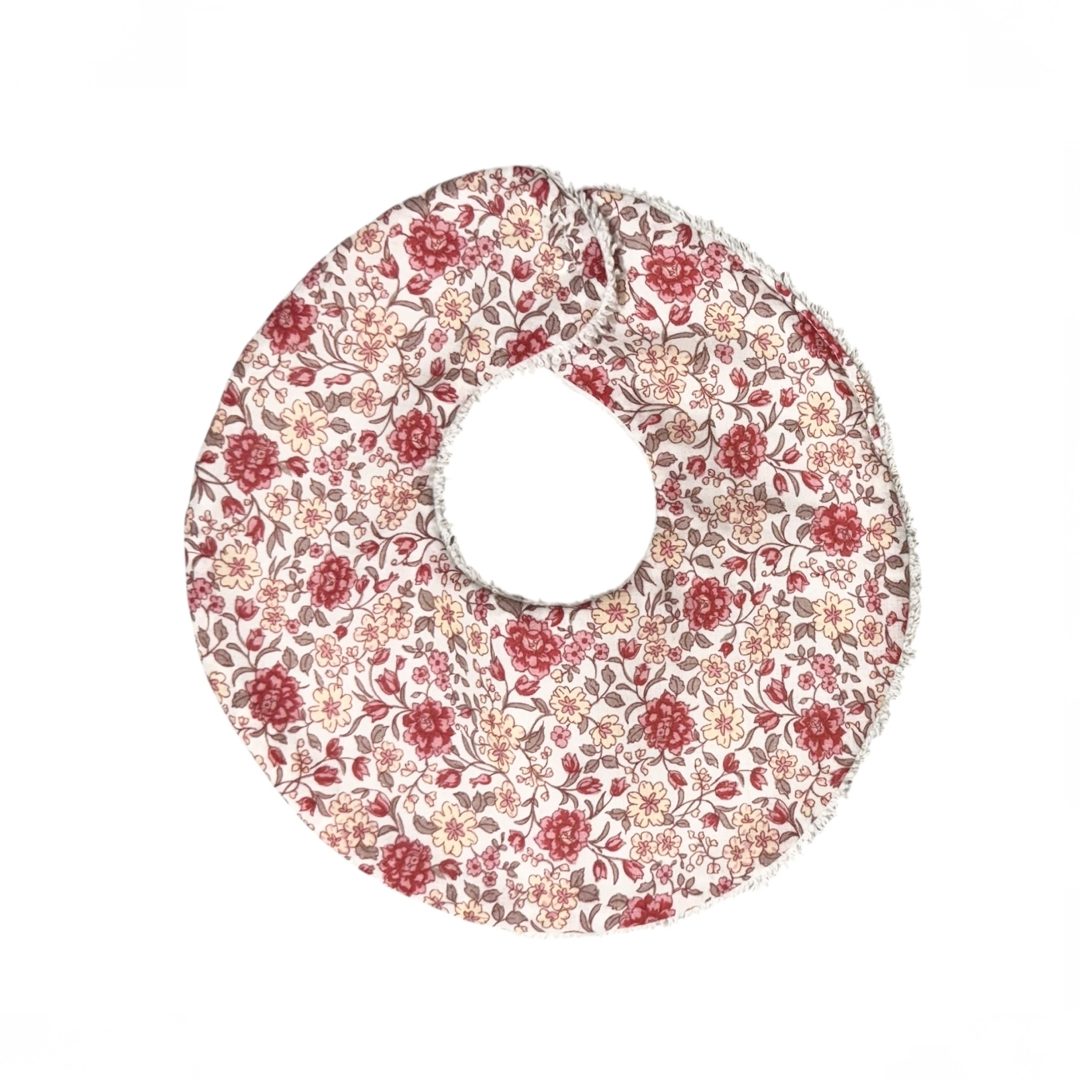 Babero frontal en tejido de algodón estampado. Reverso con toalla de rizo blanco. Cierre con Velcro.