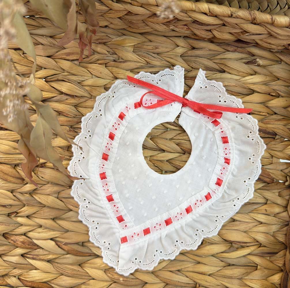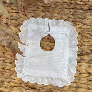 Babero practico y comodo para vuestros bebes, en pique blanco con tela de rizo impermeable por la parte de atrás.