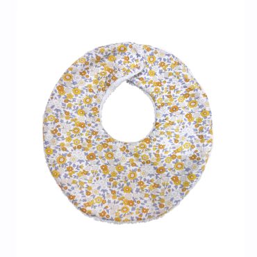 Babero frontal en tejido de algodón estampado. Reverso con toalla de rizo blanco. Cierre con Velcro.