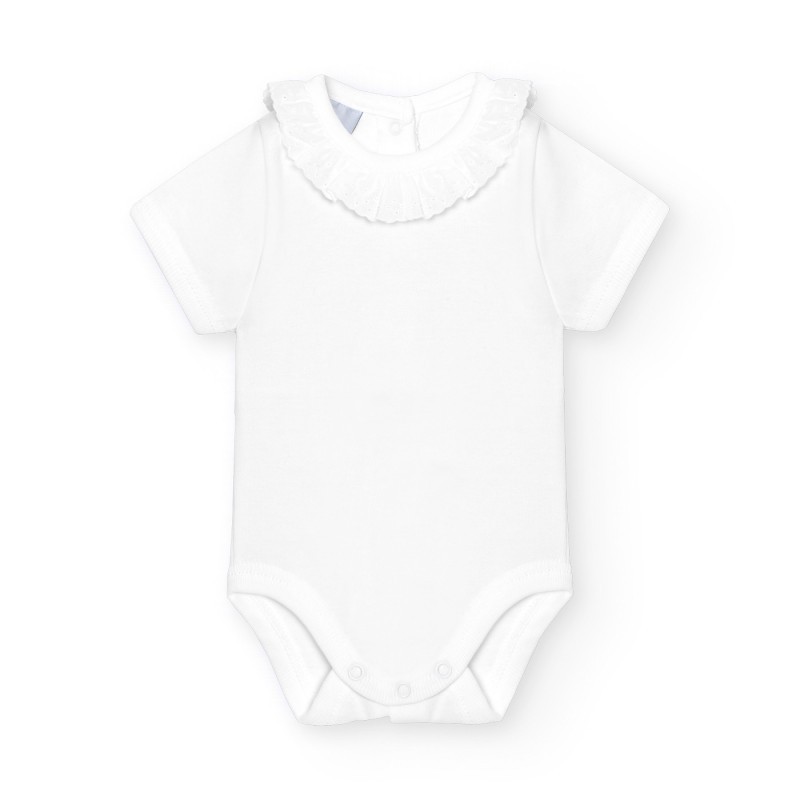 Body Unisex Con cuello estilo batista en diferentes colores, apertura trasera mediante cierres automáticos. COMPOSICIÓN: 100% ALGODÓN. CUIDADOS: Lavar a máquina – agua fría (30 ° max). PRESENTACIÓN: Bolsa