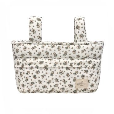 Bolsa panera ideal para tu carrito, adaptable a cualquier manillar de silla o capazo. Muy cómodo para guardar todas las cosas necesarias del bebé para su paseo. Compuesto por dos asas que se agarran al manillar del carro con click, dos bolsillos interiores y cierre del bolso con cremallera, un bolsillo exterior con cremallera y asa larga para poder llevar el bolso a cualquier parte. Bolso impermeable en su interior compuesto por guata intensa y resistente para que proteja todas las cositas de su interior.