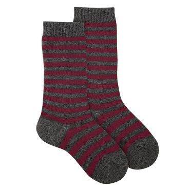 Calcetines altos canalé, dos listas hilo brillante Iris
