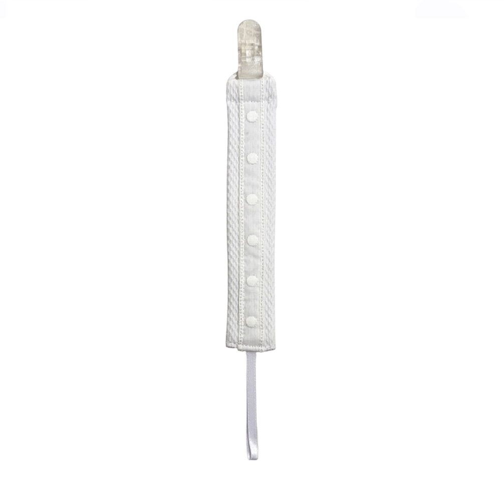 Estos sujetachupetes muy prácticos en colores únicos y elegantes, evitan que el chupete se pueda llegar a caer al suelo. Antes de su uso inspecciona el estado del chupetero, así como de su broche, debes tirarlo al primer indicio de deterioro. No debe usarse como un juguete, su función es sujetarse solo a la ropa de manera que el chupe no caiga al suelo. Nunca intentar alargar la cinta del chupete a través de alguna cinta, lazo, etc., llevan una medida especifica  de 22cm para que no pueda estrangularse en este caso. No utilizar el chupetero cuando en el niño esté en la cuna y sin supervisión de un adulto.