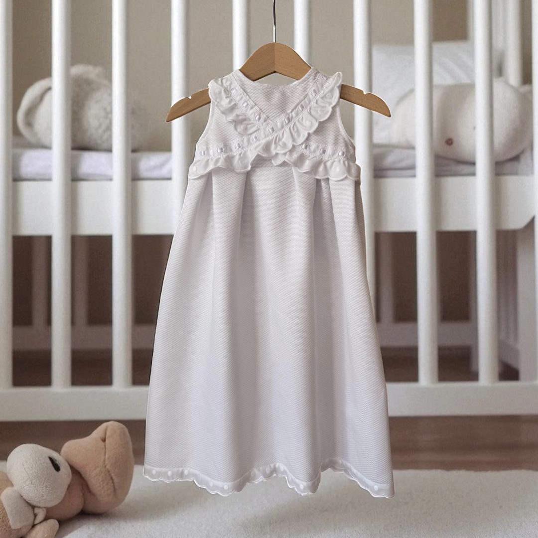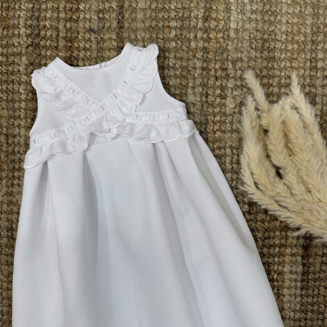 Faldón para bebés en piqué blanco 100% algodón, con entredos.