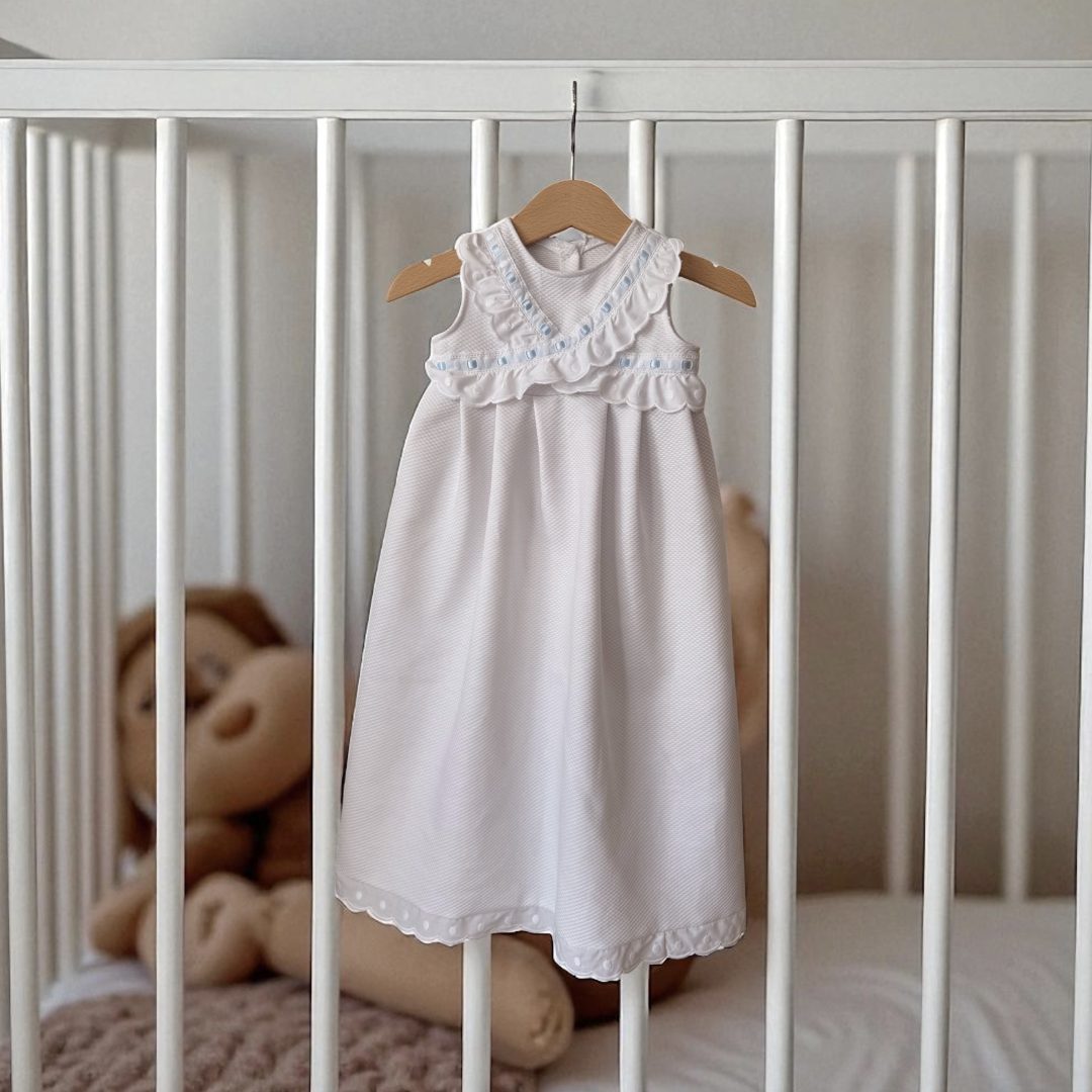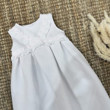 Faldón para bebés en piqué blanco 100% algodón, con entredos.
