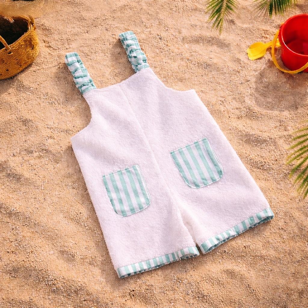 Peto de rizo confeccionado en 100% algodón. Resulta muy cómodo ya que se ajusta en los hombros con dos tirantas.