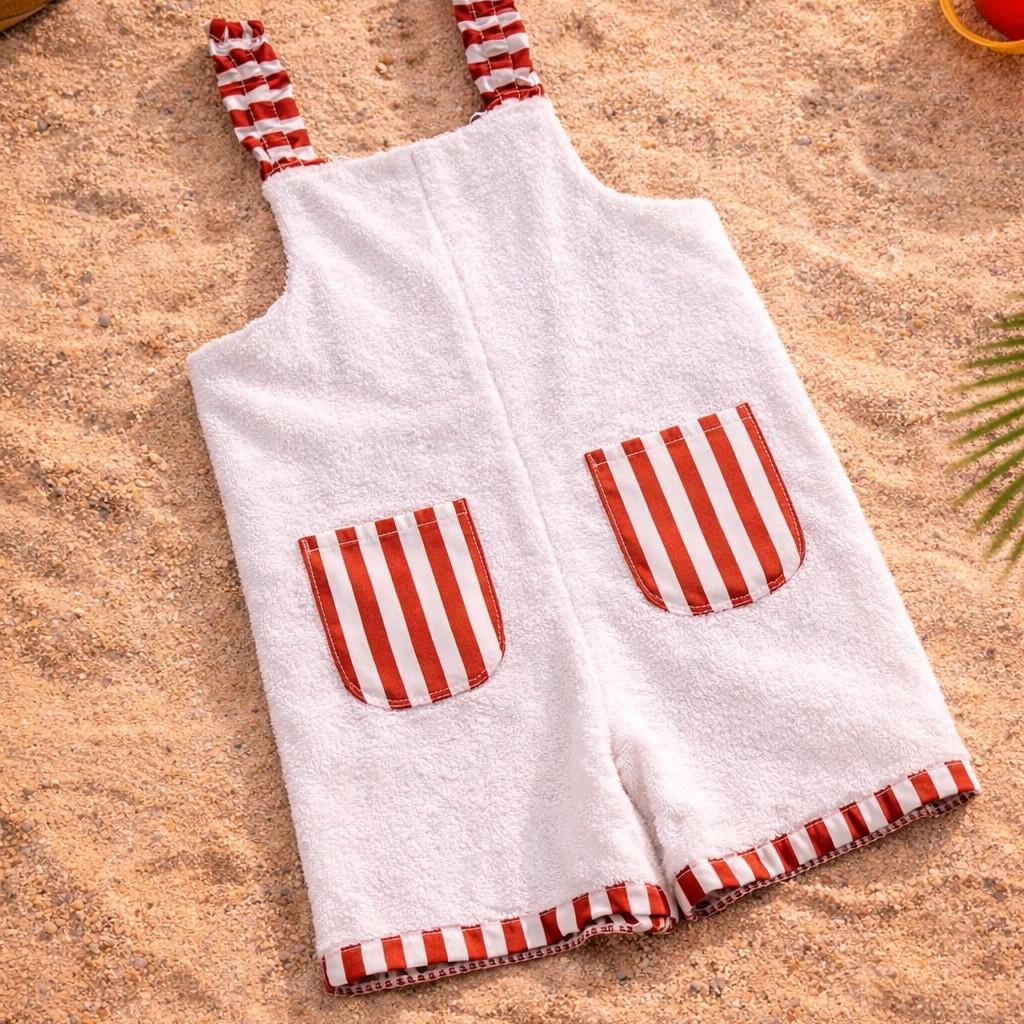 Peto de rizo confeccionado en 100% algodón. Resulta muy cómodo ya que se ajusta en los hombros con dos tirantas.