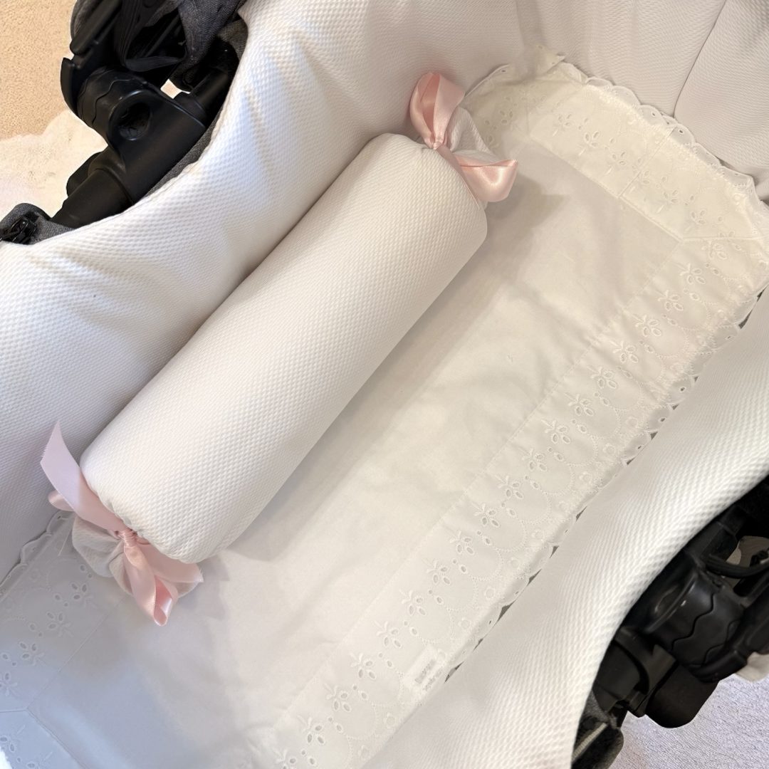 Rulo antivuelco desenfundable con práctica gomas invisible en el borde para su perfecto ajuste. Relleno de espuma sólida para el correcto posicionamiento del recién nacido en sus primeros meses.
