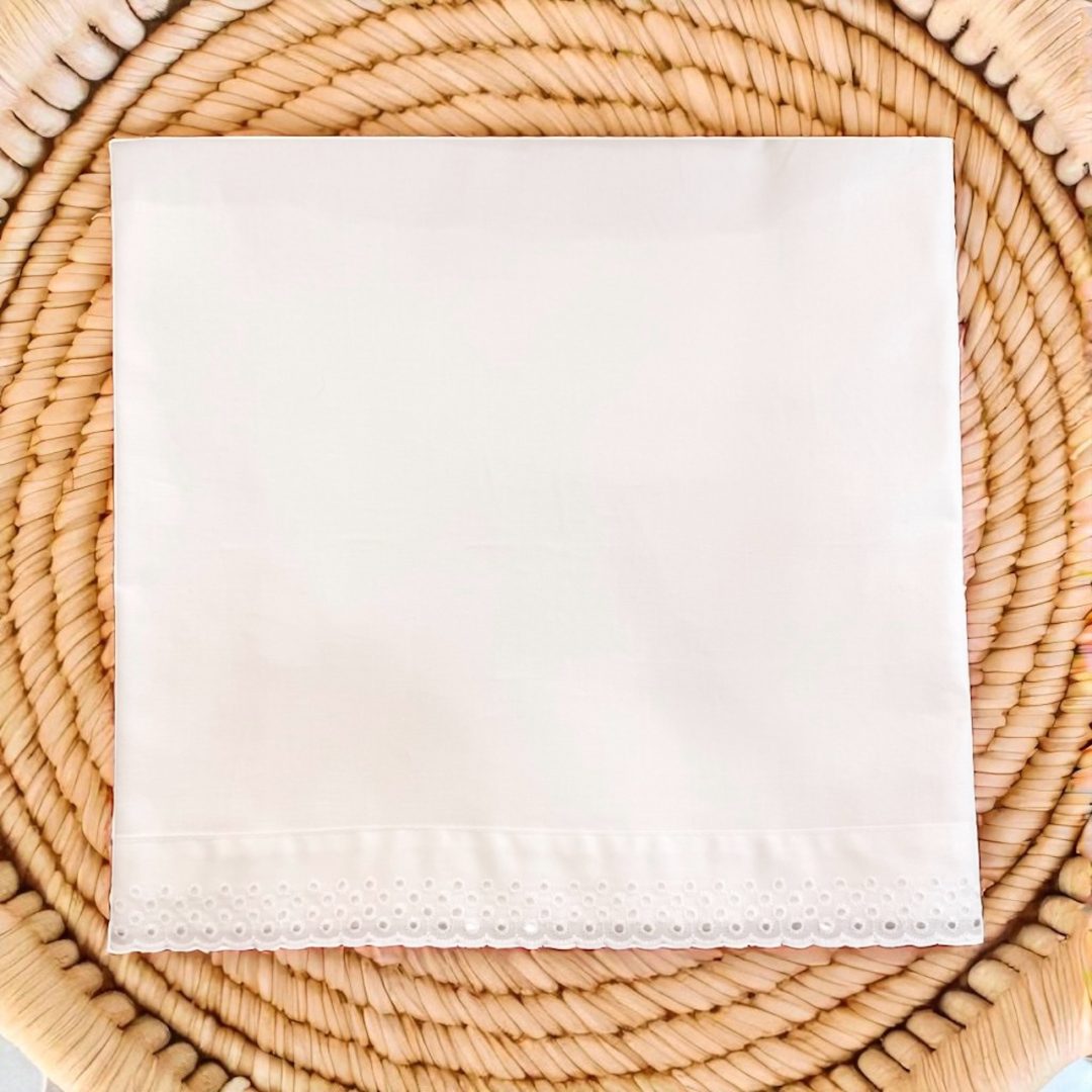 Sábanita para carrito, capazos de mimbre, minicunas etc. Fabricada en tejido de algodón 100% con certificado OEKO-TEX. El embozo lleva una tira bordada en el mismo tono.